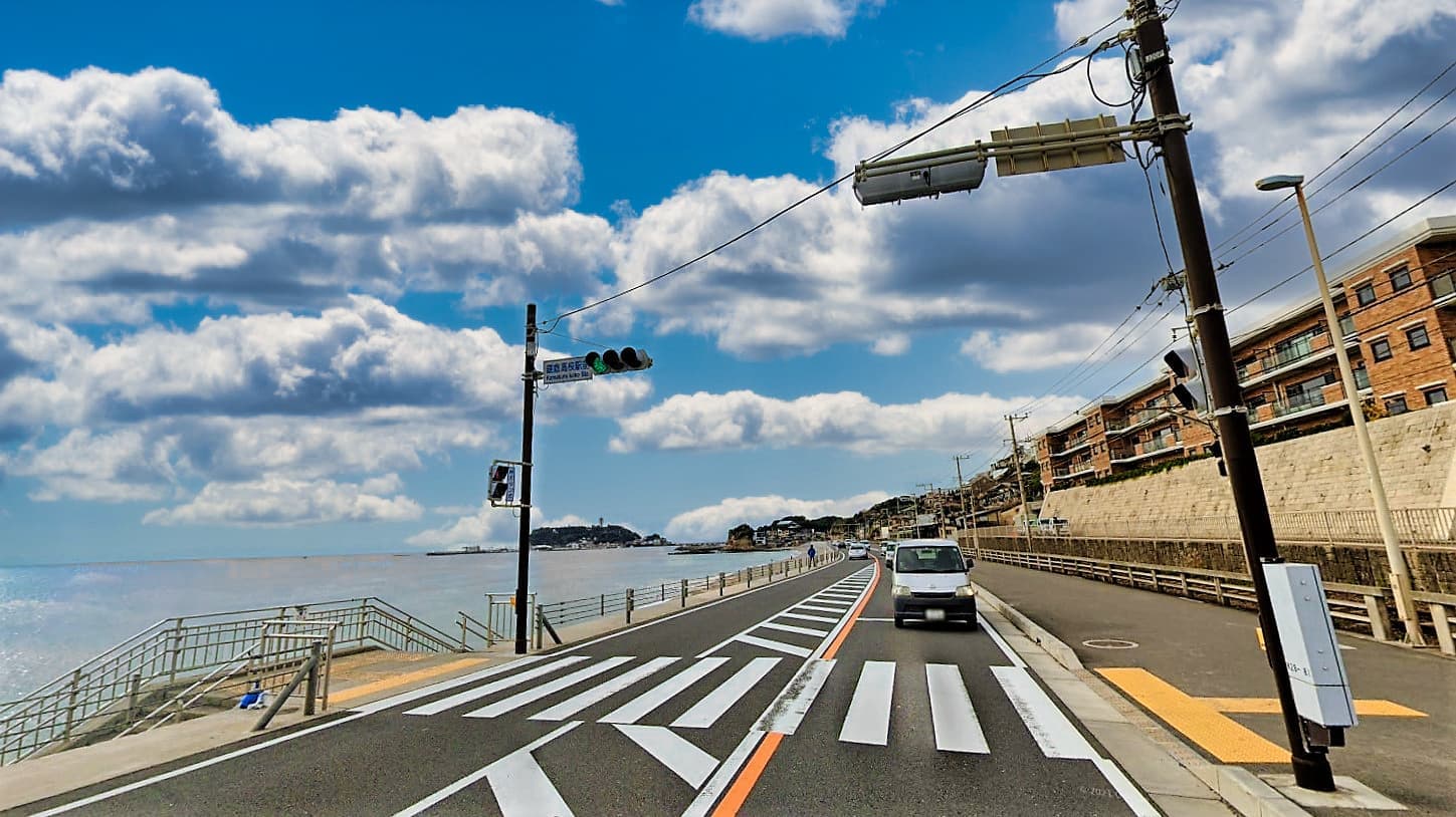 向かって右側の歩道(国道134号沿い)にて江ノ島方面へ直進。