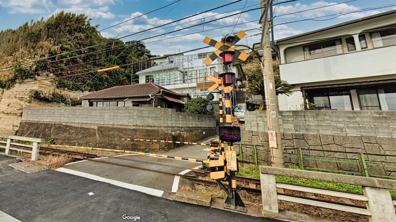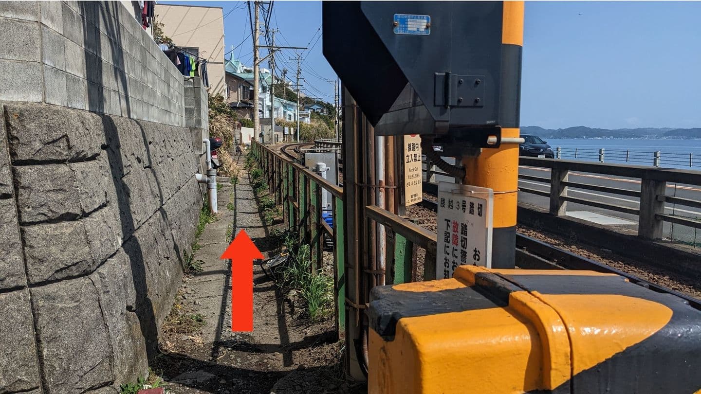 駅から3つ目の踏切があるので、こちらの踏切を渡ってすぐ線路沿いに右折。