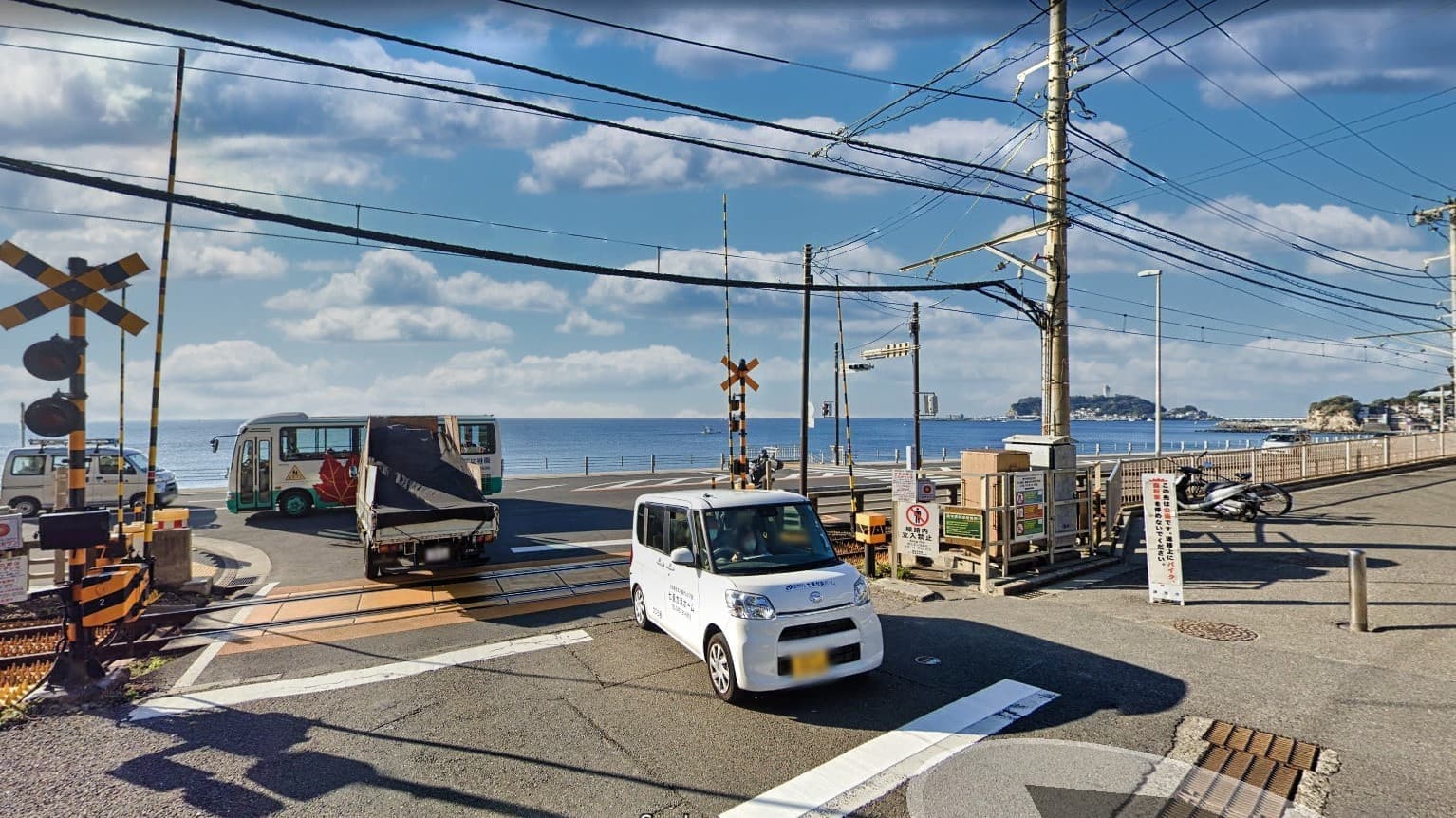 駅よりすぐの踏切を渡り右折、国道134号を江ノ島方面へ直進。